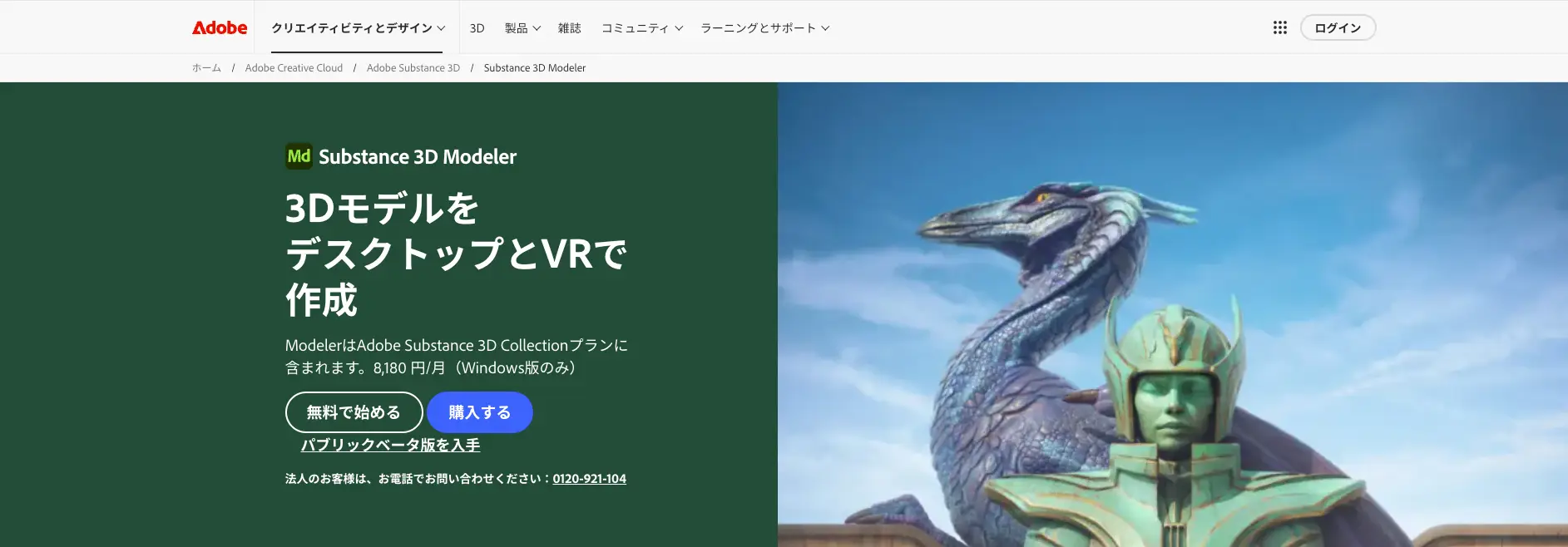 『Substance 3D Modeler』は、アドビ社が提供する感覚的に3Dモデルを作れるスカルプト系のモデリングソフトです。『Creative Cloud』との連携が強みで、『Photoshop』や『Illustrator』で作成した素材を活かすことができます。