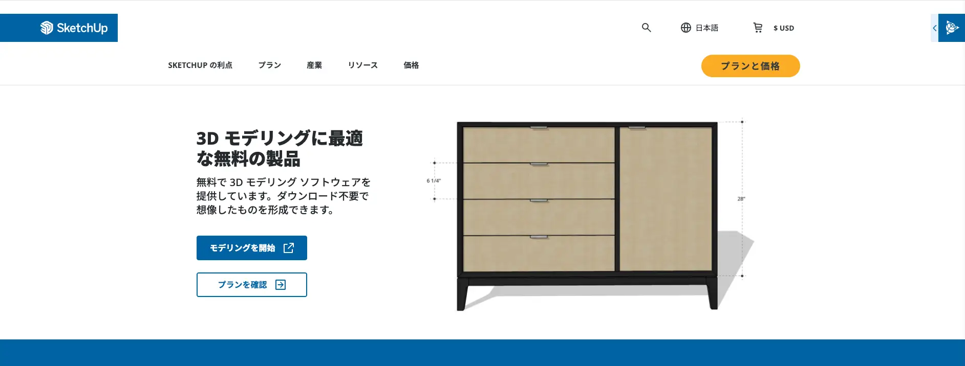 『SketchUp Free』は、建築やインテリア分野で人気の高い3Dデザインソフトです。ブラウザ上で利用できるためPCへの負担が少なく、CADの知識がなくても建物や家具の3Dモデルを直感的に作成可能。無料プランでも十分に活用できますが、商用利用や高度機能は有料プランで対応します。