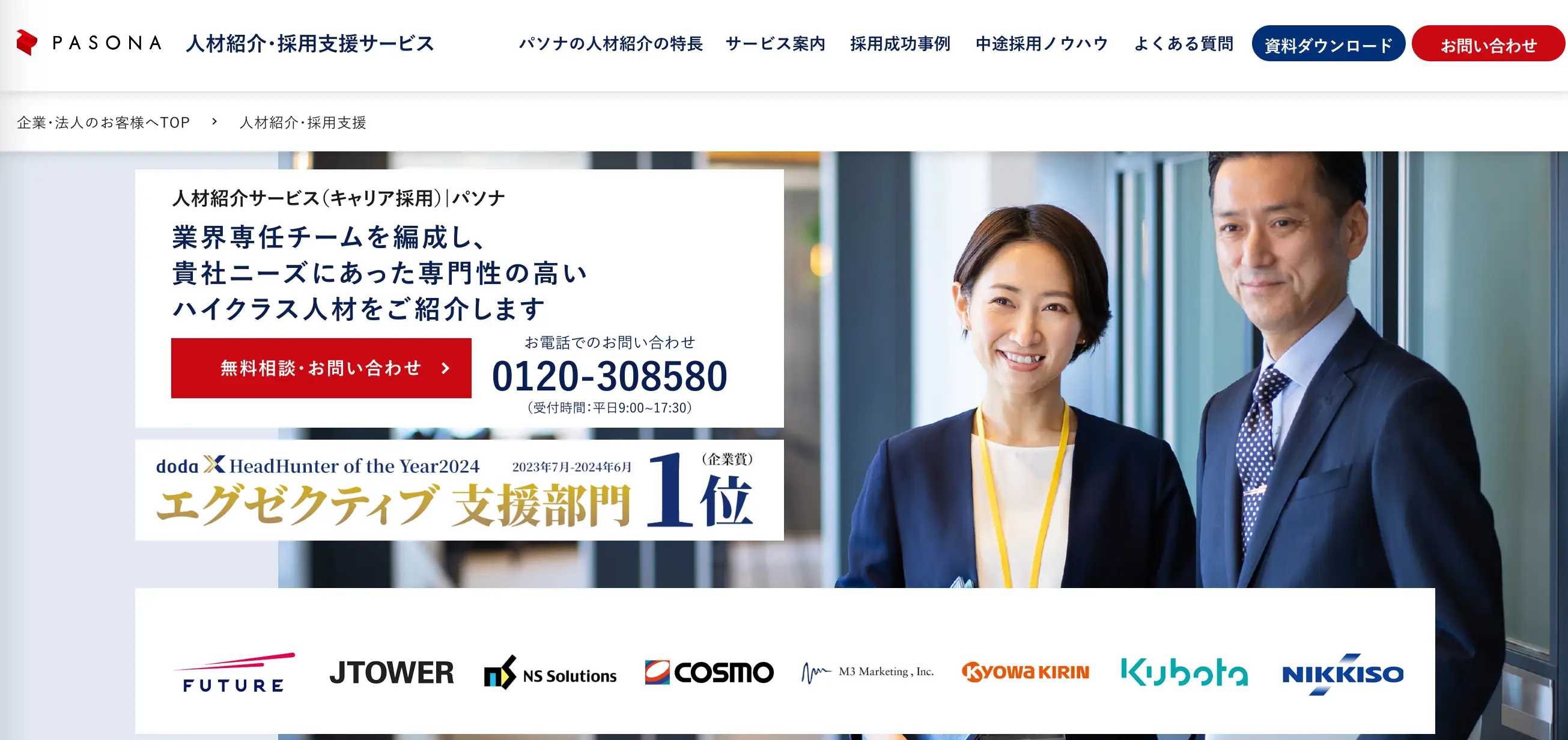 パソナキャリアは、業界特化型のコンサルタントが企業と求職者の双方を担当する人材紹介サービスです。