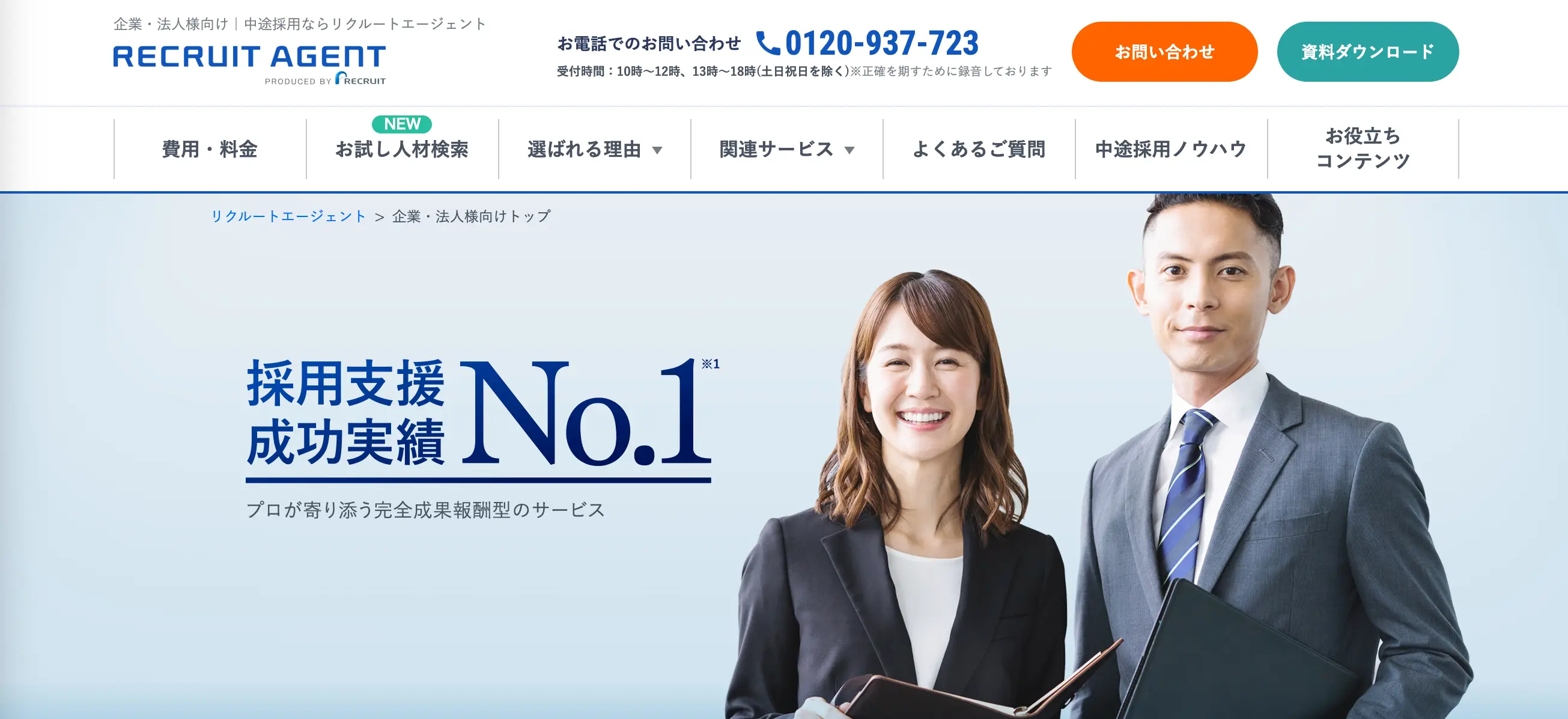 リクルートエージェントは、高い採用成功実績を誇る人材紹介サービスです。