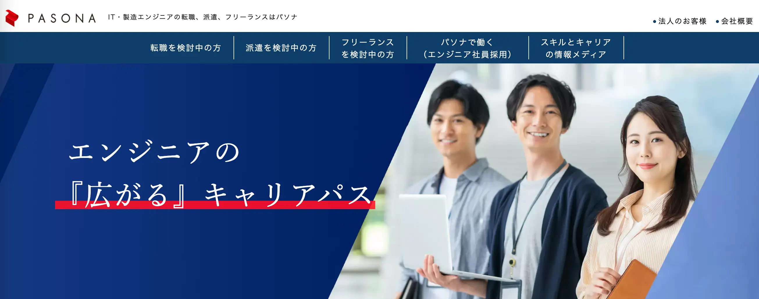 第6位 | パソナキャリア | ・大手製造業とのネットワークが強い。 ・技術系職種の非公開求人が多数。 |