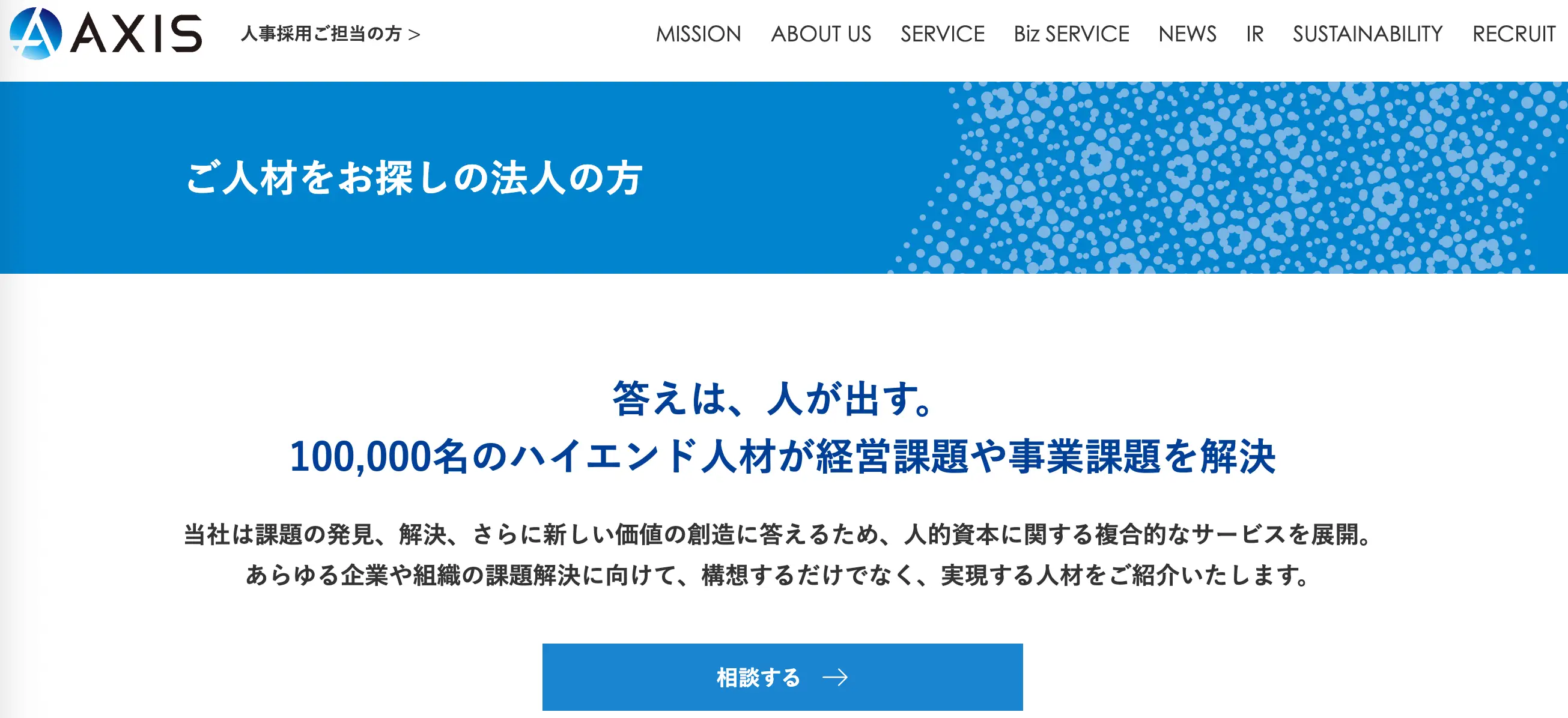 アクシスコンサルティングは、コンサル業界・DX・CxO領域に特化したハイエンド人材の紹介に強みを持つエージェントです。