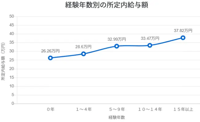 特に5~9年で平均478万円と、日本の平均給与を超えており、専門性が評価される傾向がみられます。また、管理職やディレクション業務への移行に伴い、年収が増加していることも予想されます。