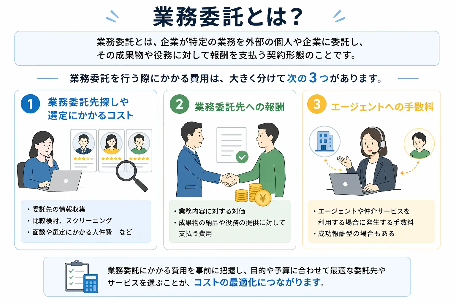 業務委託を行う際にかかる費用には、大きく分けて次の3つがあります。