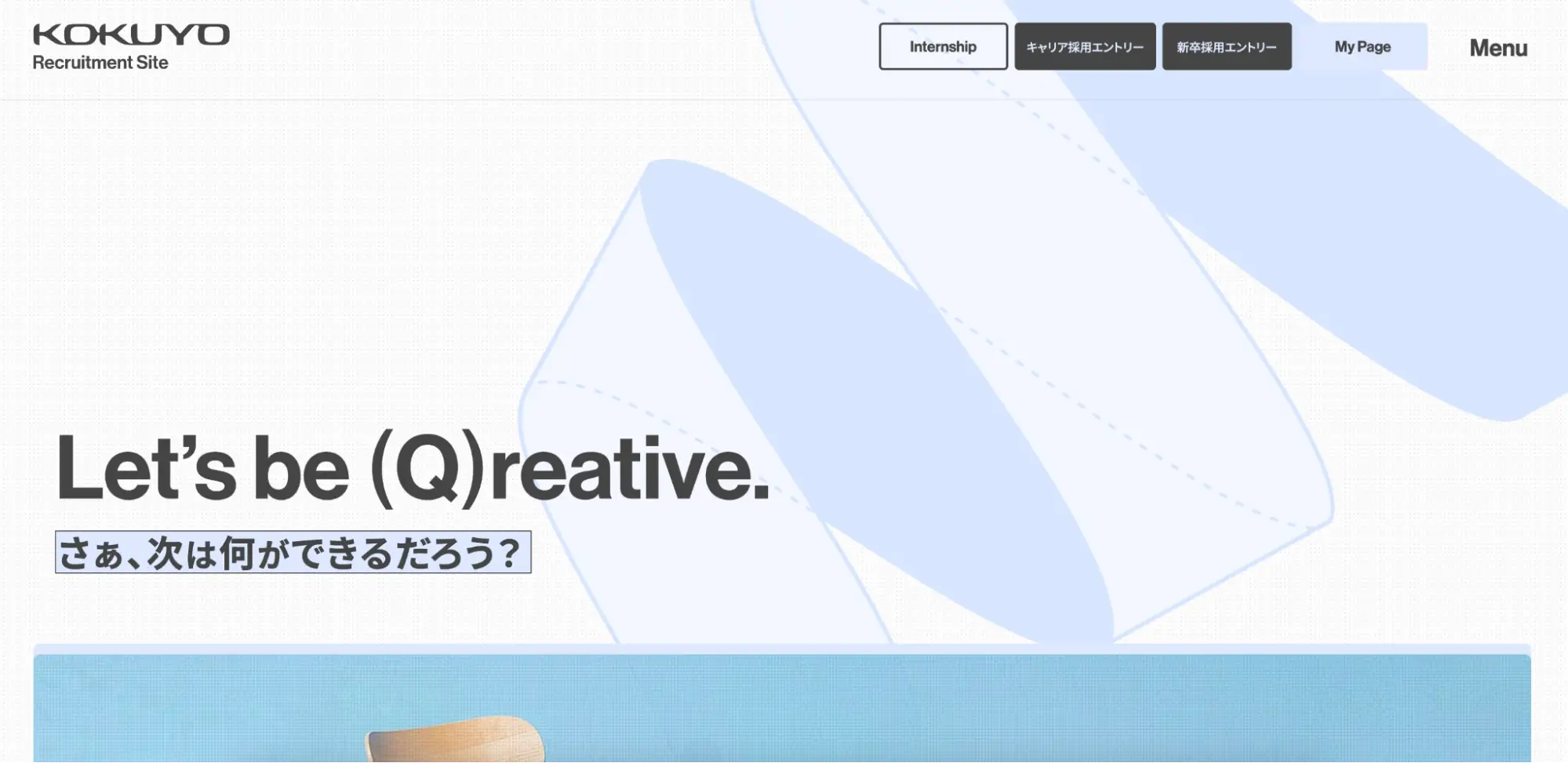 コクヨ株式会社の採用サイトは、白をベースにしたシンプルなデザインとなっています。採用メッセージや求める人物像を求職者にストレートに伝えています。常に挑戦を続けていることがわかるプロジェクトストーリーなど、老舗でありながら新しい価値提供をし続ける企業文化を分かりやすく伝えています。