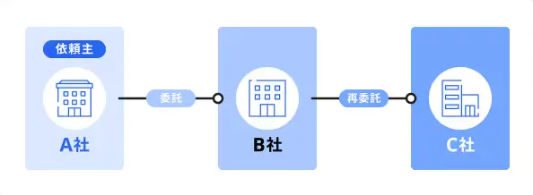 例えば、企業が制作会社にWebサイトの構築を依頼した場合、制作会社がWebデザインを下請け業者にあたるフリーランスへ依頼するといったケースです。
